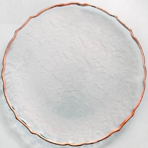 จานแก้วขอบทองแบบทันสมัยถาดสำหรับใส่สเต็กและของหวานสำหรับงานแต่งงานในโรงแรมและร้านอาหารขนาด33ซม.